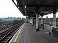 Island platform looking east, with former GWR tracks used mostly by freight on the extreme left.