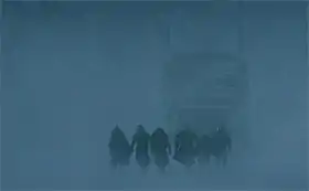 ![]() جان اسنو و همرزمانش به آنسوی دیوار میروند | |