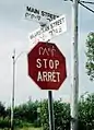 نشان ایست یکی ازمهمترین نشانهای بازدارنده یا انتظامی راهنمایی و رانندگی در سراسر دنیاست. این تابلو معمولاً در محل تقاطعهایی با ترافیک نرمال که نیاز به نصب چراغ راهنمایی و رانندگی نیست استفاده میشود. معمولاً خطی از پای تابلو ایست روی زمین کشیده میشود که به آن خط ایست گفته میشود. راننده هنگام مشاهده این تابلو باید قبل از خط ایست بایستد تا خودرویی که زودتر به تقاطع یا چهار راه رسیده حرکت کند و سپس به حرکت خود ادامه دهد. به عبارتی دیگر به هنگام مشاهده ی این تابلو حق تقدم با رانندهای است که زودتر به چهار راه رسیده یا نشان ایست بر سر راه او نیست. این نشان در امریکای شمالی بسیار رایج است بطوریکه در محل تقاطع تمامی کوچهها میتوان آن را مشاهده کرد. حداقل ایست به هنگام مشاهده ی این تابلو در امریکا 3 ثانیه است، سپس راننده با کسب اطمینان از وسایل نقلیه و افراد پیاده ی پیرامون خود به حرکت خود ادامه میدهد.
