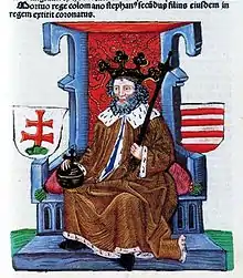 او پسر کالمان بود و در زمان پدر تاجگذاری نمود، زیرا پدرش از برای آیندهٔ تاج و تخت و جانشینی پسرش نگران بود. در زمان پادشاهی او روابط مجارستان با روم شرقی رو به تیرگی بیشتر گرایید. همچنین مجارستان گرفتار جنگ با جمهوری ونیز نیز گردید. مرگ او به دلیل ابتلایش به دیسانتری بود.