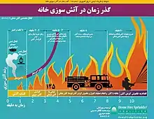 در این نمودار اقدامات انجام شده در جهت شناسایی ، اعلام و خاموش کردن آتش را بر اساس زمان و رشد آتش را نمایش می دهد . بر اساس منحنی ، آتش پس از یک دقیقه کشف و امکان گزارش آن به سایر ساکنین و سازمان آتش نشانی را امکان پذیر می نماید . در این راستا پس از 3 الی 4 دقیقه پس از شروع آتش سوزی خودروهای آتش نشانی به محل آتش سوزی اعزام خواهند شد. در این بین بر اساس استانداردهای حدود 3 الی 4 دقیقه زمان لازم برای رسید به محل آتش سوزی تعیین شده است . تا این لحظه حدود 8 الی 9 دقیقه از شروع آتش سوزی گذشته است و آتش بسیار گسترش یافته و تقریبا کانون وقوع آتش سوزی نابود گردیده و افراد داخل آن جان خود را از دسته داده اند . در زمان حدودا 9 الی 10 دقیقه پس از شروع آتش سوزی ، آتش نشانان در محل بوده و در حال انجام عملیات نجات و اطفای آتش می باشند . همان طور که مشاهده شده نقش سیستم های کشف و اعلام حریق بسیار حیاتی بوده چرا که پس از 3 الی 5 دقیقه فلش آور رخ خواهد داد بنابراین ساکنین ساختمان فقط 3 دقیقه فرصت خواهند داشت تا از صحنه آتش سوزی فرار نمایند. نقش سیستم های خاموش کنند آتش اتوماتیک مانند اسپرینکلر در این است که پس از شروع آتش سوزی در صورتی که این سیستم ها اصولی طراحی شده باشند و آماده بکار بوده باشند در کمتر از 2 دقیقه آتش را کنترل نموده و دیگر قطعا وقوع فلش آور ( آتش سوزی ناگهانی همه مواد قابل اشتعال در محیط) رخ نخواهد یافت بنابراین آتش گسترش نمی یابد و با این سیستم از بروز خسارات بیشتر پیشگیری خواهیم کرد و ایمنی افراد ساختمان و آتش نشانان را به همراه خواهد داشت . [2]