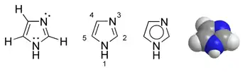 مشتقات ایمیدازول، که ایمیدازول ها نامید می شوند، خانواده ی متعارفی از ترکیبات حلقوی تشکیل می دهند در حلقه ی 1,3-C3N2 مشترکند اما با تغییر سایر اجزا مشخصاتشان نیز عوض می شود. این سیستم حلقوی در ساختمان سازندهٔ مواد زیستی حضور دارد، مثل هیستیدین، و هورمون وابسته به آن هیستامین. اغلب داروها حلقهٔ از ایمیدازول دارند، مثل داروهای ضد قارچ، نیترویمیدازول، و ماده آرام بخش میدازولام.