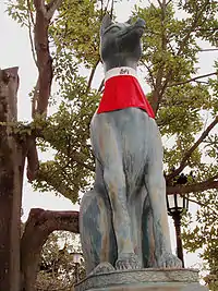 مجسمه روباه در معبد اصلی ایناری در ناحیه فوشیمی در شهر کیوتو.