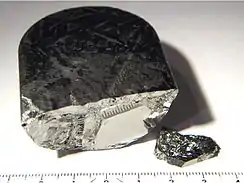 | شکل ظاهری | Dark grey metallic crystals |