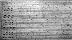 - انگلیسی باستان: Gif man þeoh þurhstingð, stice ghwilve vi scillingas. Gife ofer ynce, scilling. æt twam yncum, twegen. ofer þry, iii scill. Translation (taken from Attenborough 1922, p. 13): If a thigh is pierced right through, 6 shillings compensation shall be paid for each stab. For a stab over an inch [deep], 1 shilling; for a stab between 2 and 3 inches, 2 shillings; for a stab over 3 inches 3 shillings.[8][9]