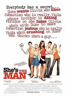 - مشارکتکنندگان ویکیپدیا. «She's the Man». در دانشنامهٔ ویکیپدیای انگلیسی، بازبینیشده در ۹ ژانویه ۲۰۱۴.