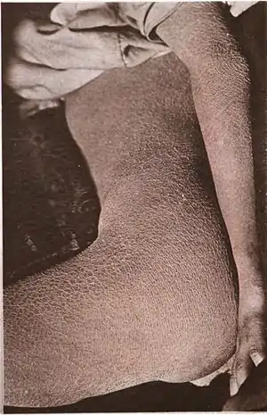 | ایکتیوز عمدتاً با علائمی مانند پوست خشک و زبر در بیماران خود را نشان میدهد. | |
