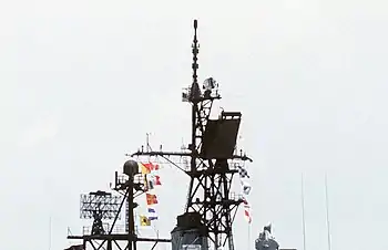 ![]() An SPS-48E radar antenna (the large square panel) aboard یوا Theodore Roosevelt (CVN-71). | |