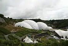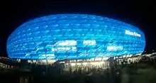 بالشتکهای پرشده از هوایی است که از ۲ تا ۵ لایه پلیمر ،ETFE پانلهای ورق که از طریق فرایند ETFE ترکیبی ۲ اتیلن، به نام تترا فلورواتیلین تشکیل شدهاند. ورق اکستروژن (دمیدن مذاب پلیمری درون قالبی به شکل دلخواه با فشار زیاد)، به شکل فیلمهای نازکی درآمده، توسط یک قاب آلومینیومی نگه داشته میشود که به اسکلت ساختمان متصل است. این سازه غشایی مشبک سبک و شفاف، تنها تنش کششی را تحمل میکند و وزن پوسته خارجی و سیستم باربر سازه را به حداقل ممکن میرساند. مقاومت سازهای ETFE ۲۲۲ باد میشوند که به ورق Pa بالشتکها با فشارکمی، تقریباً بخشیده و سقف را به میزان بالایی عایق میکند.[3]