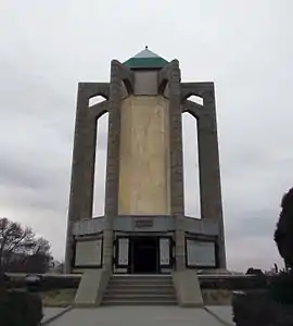 کتیبهٔ شرح بازسازی آرامگاه باباطاهر در شهر همدان توسط محمدرضا شاه پهلوی (بعد از انقلاب اسلامی ایران، اسامی محمدرضا شاه پهلوی و رضاشاه از این کتیبه پاک شدهاست).