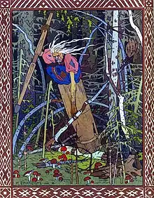 بابا یاگا در اساطیر اسلاو و روسی، یک جادوگر افسانهای و یکی از معروفترین چهرههای اسطورهای ادبیات قومی روس است که در بسیاری از قصهها و افسانههای جهان حضور دارد. او به مدت چندین قرن در سراسر شرق اروپا مورد وحشت مردم، به خصوص کودکان بود و به صورت جادوگر هولناکی درآمد و تجسم مرگ شد. شخصیت مشابهی را نیز میتوان در آلمان و در میان یونانیها، فنلاندیها و مردمان بالتیک یافت. این شخصیت را اسلاوهای جنوبی، شرقی و غربی همگی میشناسند. نام بابا یاگا از دو بخش تشکیل شدهاست. در بیشتر زبانهای اسلاوی بابا به معنی «مادربزرگ یا پیرزن» است. در برخی از داستانها او دارای دو خواهر بزرگتر است که آنها نیز بابا یاگا نامیده میشدند. بابا یاگا ظاهری همیشه پیر، با موهای خاکستری و چهرهای ترسناک و نفرتانگیز داشت. همچنین از او به عنوان بابا یاگای پا استخوانی یاد میشود، زیرا ظاهر لاغر و استخوانی او به یک اسکلت شباهت دارد. بر اساس افسانهها، کلبهٔ این پیرزن با نام ایزبوشکا بر روی پاهای جوجهای عظیمالجثه قرار دارد.[1][2]