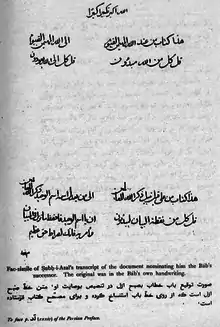 - Manuchehri, S. (2004). "The Primal Point's Will and Testament". Research Notes in Shaykhi, Babi and Baha'i Studies. Vol. 7 (No. 2). Archived from the original on 8 December 2004. Retrieved 21 February 2012.
