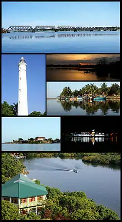 ![]() Clockwise from top: Kallady Bridge، Unnichchai Tank, Fishing boats, Batticaloa Bus stand, Batticaloa Lagoon، Batticaloa Fort، Batticaloa Lighthouse | |
