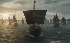 در نمای پایانی از این قسمت، دنریس به همراه ناوگانِ آهن زادهها و به کمک دورنیها، دوتراکیها، ارتش خاندانِ تایرل و آنسالیدها به سوی فتح وستروس گام کشتی رانی میکند.