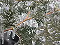 باران منجمد بر روی یک شاخه
