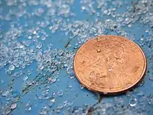 باران یخزده در کنار یک سکه برای نمایش مقیاس و اندازه