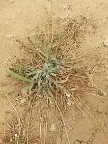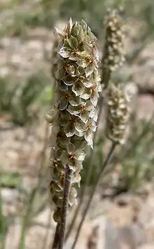 این گیاه علفی و یکساله، بدون ساقه یا دارای ساقههای کوتاه و برگهای باریک، دراز و نوک تیز با سه رگبرگ سراسری در جهت طول برگ، گلهای کوچک آن به صورت سنبلههای استوانهای یا تقریباً مدور به طول ۵/۱ تا ۳ سانتیمتر در راس دمگل ظاهر میشوند و محتوی دانههایی به رنگ قهوهای مایل به زرد هستند. ارتفاع این گیاه به ۱۰ تا ۳۵ سانتیمتر میرسد. میوه این گیاه پوشینه، شکوفا، دو خانه و محتوی معمولاً یکدانه کوچک، لغزنده و به رنگ قهوهای در هر خانهاست. این گیاه به حالت خودرو روی چمنهای خشک، چراگاهها، مزارع رها شده، علف زارها، کنار راهها و جویبارها و بیابانهای بایر دیده میشود.