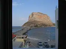 مونمواسیا در یونان. نام مونمواسیا در یونانی به معنای «تنها راه» است.
