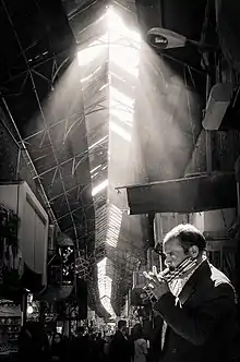 مردی در حال نواختن فلوت در بازار سنتی سبزوار