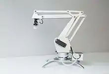 بازوی روباتیک نوعی بازوی مکانیکی، عموماً قابل برنامهریزی، است که کاربردهایی مشابه بازوی انسان دارد. بازوی رباتیک ممکن است خود یک ربات باشد یا بخشی از یک ربات پیچیدهتر باشد. اتصالات چنین بازویی آن چنانند که امکان جابجایی چرخشی (شبیه رباتهای بندی) یا انتقالی (خطی) را فراهم میکنند.[1][2] اتصالات بازو میتوانند یک زنجیره حرکتی (به انگلیسی kinematic chain) را ایجاد کنند. قسمت انتهایی زنجیره حرکتی بازوی مکانیکی، تأثیرگذار نهایی (به انگلیسی end effector) نامیده میشود.