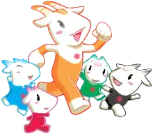 عروسک رسمی این بازیها پنج قوچ ورزشی میباشد. آنها در ۲۸ آوریل ۲۰۰۸، در بایون، مرکز بینالمللی همایشها و نمایشگاههای گوانگژو رونمایی شدند.[28][29] این پنج قوچ شامل چهار قوچ که با نامهای کوتاه و یک قوچ که با نام بلند - آ ژیانگ (祥)، آ هه (和)، آ رو (如)، آ یی (意) و لی یانگیانگ (樂洋洋) نامگذاری شدهاند، میباشد. آ ژیانگ به معنای خجستگی و فرخندگی است، آ هه به معنی یگانگی و هماهنگی است، آ رو و آ یی به معنای رضایت و شعف از یک آرزو هستند و لی یانگیانگ به معنای شادی است. وقتی نام چینی این پنج قوچ باهم نامیده میشوند به معنای واقعی کلمه پیامآور «سعادت و فرخندگی، هماهنگی، رضایت و شعف، موفقیت و شادی» هستند (祥和如意樂洋洋).[30]
