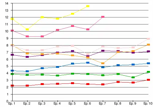 | فصل ۷ | ۲۱ آوریل ۲۰۱۶[34] | اوت ۲۰۱۶ تا فوریه ۲۰۱۷ | ۱۶ ژوئیه ۲۰۱۷[52] | ۲۷ اوت ۲۰۱۷ | محتوای جدید و قسمتهایی از بادهای زمستان و رؤیای بهار[50] |