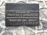 پس از این مسابقه یک پلاک یادگاری بر دیواره ورزشگاه آزتیکا نصب شد که روی آن نوشته شدهاست: ورزشگاه آزتیکا به تیمهای ملی ایتالیا (۴) و آلمان (۳) که در جام جهانی ۱۹۷۰ درخشیدند احترام میگذارد، در «بازی قرن». ۱۷ ژوین ۱۹۷۰.