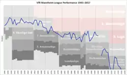 نمودار تاریخی عملکرد لیگ باشگاه مانهایم بعد از جنگ جهانی دوم