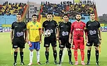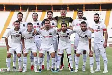 ![]() بازیکنان نساجی مازندران قبل از بازی با نفت آبادان در سال ۱۳۹۷ | ||||
