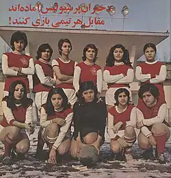 | بازیکنان آغازگر نخستین بازی رسمی باشگاه پرسپولیس (پس از پیوستن شاهینیها) برابر تاج در روز ۱۶ فروردین ۱۳۴۷ در ورزشگاه امجدیه.[33] مربی پرسپولیس پرویز دهداری بود.[34] |