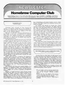 - Wikipedia contributors, "Homebrew Computer Club," Wikipedia, The Free Encyclopedia, http://en.wikipedia.org/w/index.php?title=Homebrew_Computer_Club&oldid=511981355 (accessed September 28, 2012).