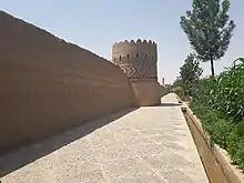 اطراف باغ دولتآباد توسط دیوار بلند خشتی که دارای یک برج دیدهبانی میباشد احاطه شدهاست.[5]