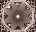 سقف قسمت میانی (هشتی) دارای کاربندی زیبایی که اثر استاد حاجی علی اکبر آخوند است که با سیم گل و دمگیری گچی به طرزی بسیار ماهرانه اجرا شدهاست.