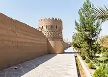 ![]() نمایی از عمارت و بادگیر باغ دولتآباد | |