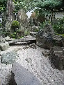 یک باغ ذن، شامل کوه، آبشار، و «رود سنگریزه» در Daisen-in (۱۵۰۹–۱۵۱۳)