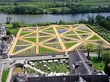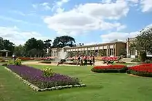 - یک تراس برافراشته بر آن مسلط شده و بازدید کننده را تشویق می کند تا منزلت باغ را کشف کند [3] ; هرچه بسترهای گل به منزلگاه نزدیکتر باشند ، بیشتر مراقبت می شوند.