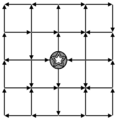 بلوک پیچ و خم: پر در چهار بلوک به یک جاده اتصال ستاره. هیچ diagonals.