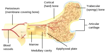 ![]() Cross-section of a long bone showing both spongy و compact osseous tissue | |
