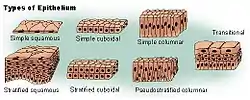 ![]() اشکال مختلف بافت اپیتلیوم | |