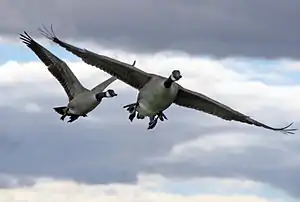 انواع دیگری مانند حواصیل و درنا برای چرخ زدن یا تغییر جهت، پاها را به شکلی خاص در امتداد و پشت بدن میچرخانند. در این پرندگان پا نقش مهمی در پرواز دارد اما در برخی دیگر پا نقش مهمی در برخاستن به منظور پرواز دارد. پرندگانی مانند چنگر، فلامینگو، قو و گونههای کمی از اردکها هنگام برخاستن ابتدا مسافتی را بر روی آب میدوند. همزمان با این دویدن، بالها به صورت پرههایی در اطراف بدن عمل میکند. هنگامی که این پرندگان به سرعت لازم رسیدند، پاها را در امتداد بدن جمع میکنند و به پرواز در میآیند.[4]