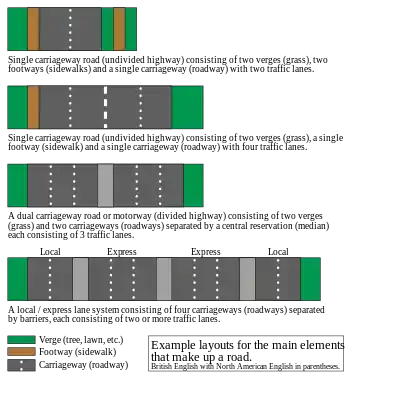 نمودار نشان دادن ترتیبات مختلف از عناصر یک جاده.