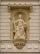 اساطیر روم زنی را ایزدبانوی (الهه) دادگستر گرفتهاند و او را یوستیتیا Iustitia نامیدهاند. یوستیتیا معمولاً چنین ترسیم شده است که شمشیری و ترازویی در دستان و چشمبندی بر چشم دارد. مجسمه بانوی دادگستر که زینتبخش کاخهای دادگستری در جهان است تلفیقی از ایزدبانوان رومی و یونانی، فورتونا با چشمبند، توخه از اساطیر یونان و نمسیس شمشیر به دست، میباشد.