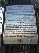 لوح نصب شده در ورودی ساختمان قدیمی بانک تجارت میدان توپخانه که در آن مختصری از تاریخچه بانک آمدهاست.