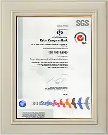 - پس از انقضاء گواهینامه 2000 : 9001 ISO که به عنوان اولین بانک در سطح خاورمیانه موفق به دریافت آن شده بود، موفق به دریافت گواهینامه 2008 : 9001 ISO از شرکت tuv nord آلمان برای تمامی فعالیتها و خدمات خود گردید.