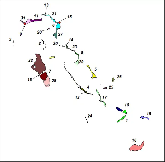 کشور باهاما شامل ۱۹ ایالت است: