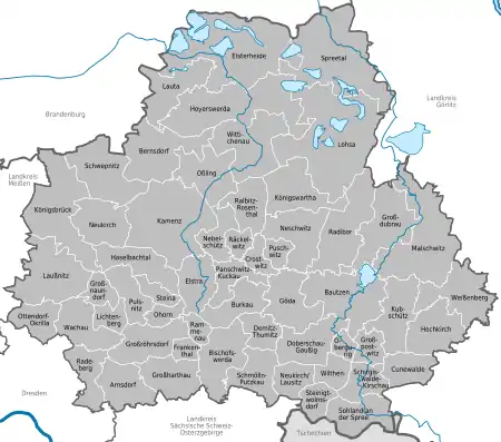 - مشارکتکنندگان ویکیپدیا. «Bautzen (district)». در دانشنامهٔ ویکیپدیای انگلیسی، بازبینیشده در ۲۸ مارس ۲۰۱۸.