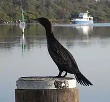 - مشارکتکنندگان ویکیپدیا. «Little Black Cormorant». در دانشنامهٔ ویکیپدیای انگلیسی، بازبینیشده در ۳۰ آوریل ۲۰۱۴.