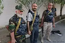![]() Armed group leader Pavlik Manukyan (وسط) و his men after seizing the police station in Yerevan. | |||||