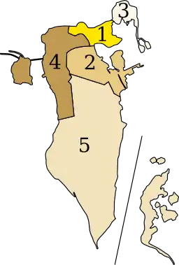 کشور بحرین ۵ استان دارد که عبارتاند از: عاصمه «استان پایتخت»، جنوبیه، شمالیه، وسطی و محرق.