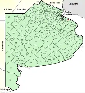 بخش پارتیدوس بوینس آیرس (انگلیسی: Partidos of Buenos Aires) زیرمجموعه اداری سطح دوم است که در استان بوینس آیرس، آرژانتین قرار دارد. آنها بهطور رسمی یک واحد اداری واحد در نظر گرفته میشوند، معمولاً شامل یک یا چند مرکز جمعیتی هستند و به محلهها تقسیم میشوند. تقسیم در پارتیدوس در استان بوینس آیرس از سایر استانهای آرژانتین، که بخشهای سطح دوم خود را بخش مینامند و بیشتر به شهرداریهای مجزا تقسیم میشوند، متمایز است.